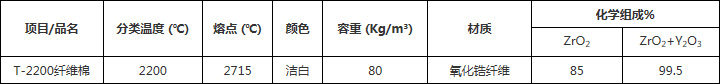 二、产品特点: 1、使用温度为最高。最高使用温度高达2200°C,甚至到2500°C仍可保持完整的纤维形状。 2、耐腐蚀性为优良。ZrO2的耐酸碱腐蚀能力明显优于SiO2和Al2O3。 3、高温下不易挥发、无污染。ZrO2在所有金属氧化物中的高温蒸气压为最低,且化学惰性,高温不易挥发、无污染。